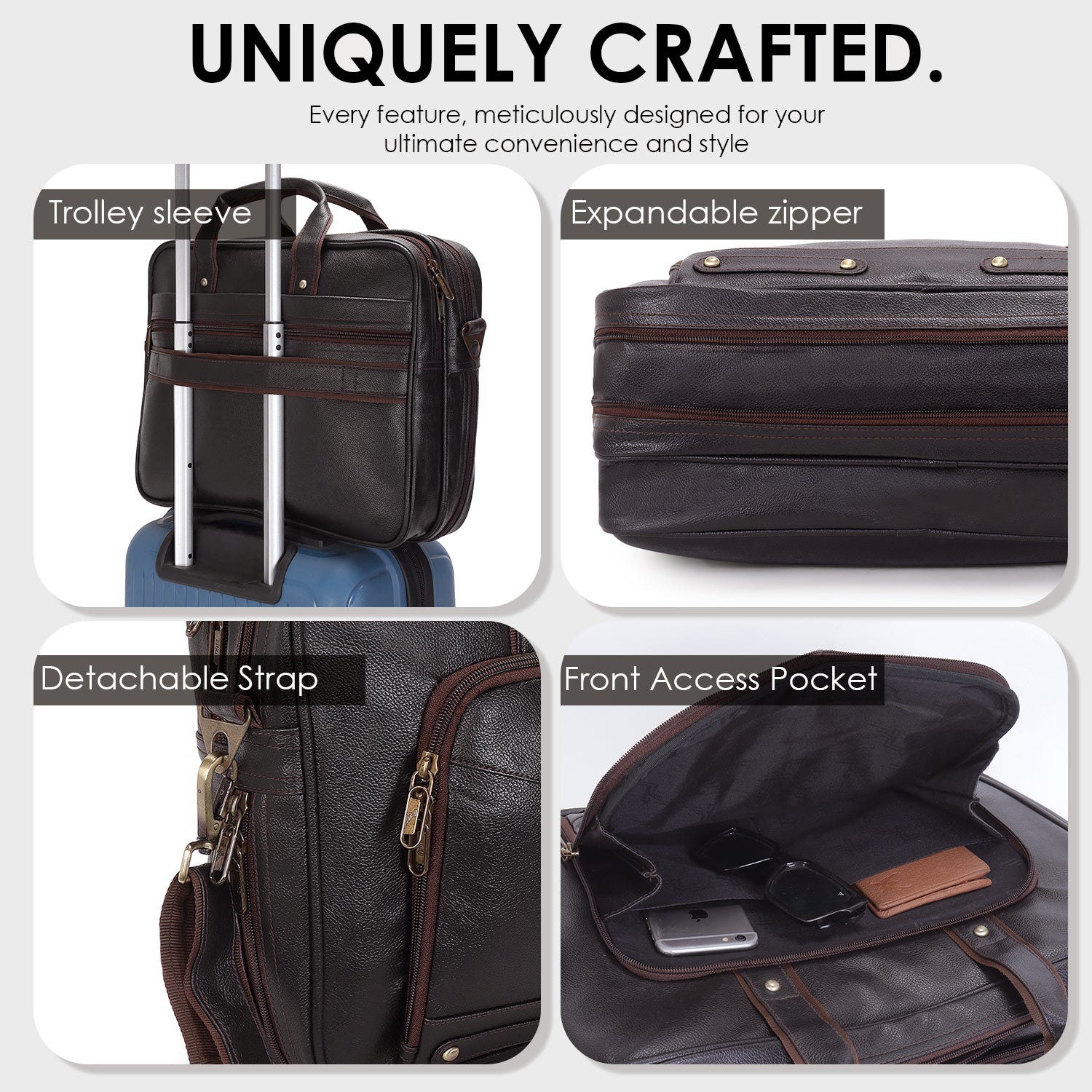 Crafted For Professionals, This Premium Laptop File Bag Offers A Perfect Balance Of Elegance And Functionality. Designed With Two Main Compartments, A Dedicated Back Pocket, And Two Front Pockets, It Ensures Seamless Organization For Your Laptop, Documents, And Essentials. The Expandable Zippered Design Provides Additional Storage When Needed.Inside, A Secure Inner Pocket Keeps Your Valuables Safe. Enhanced With metal Accents And Also Comes With Trolley Sleeve This Bag Makes A Bold Statement—ideal For Business, Travel, And Daily Office Use.