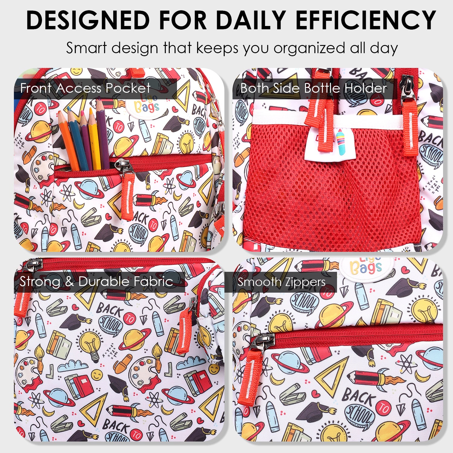 The 14-inch Fariy School Bag Features Two Main Zippered Compartments And Includes A Front Pocket For A Lunchbox, and Bottle Holders On Both Sides. It Comes With A Detchable Coin Pouch. With Its Lightweight Design And Adjustable Shoulder Straps, It’s The Perfect Choice For Kids.