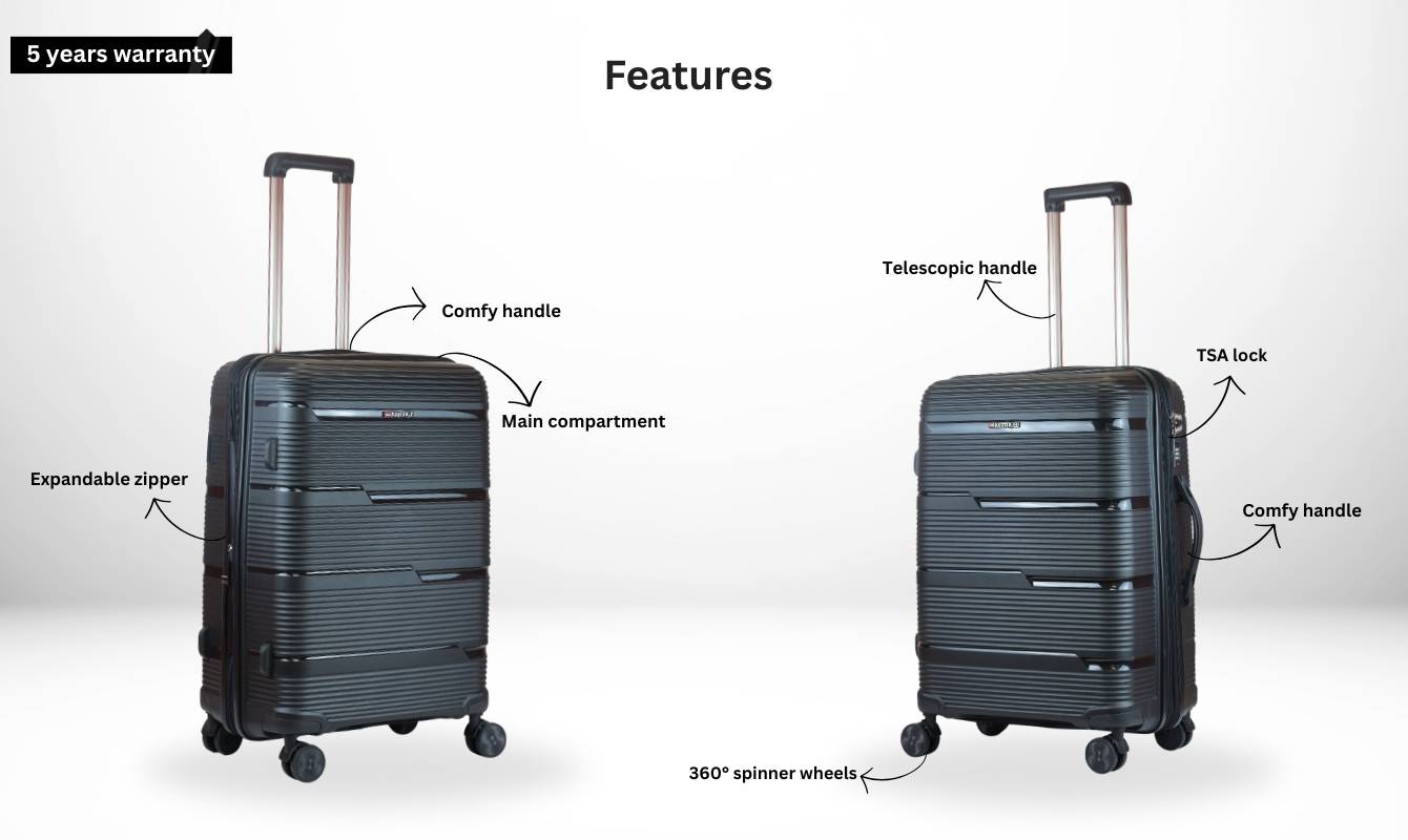 Crafted From Durable Polypropylene (PP) Material, This Premium Luggage Is Built To Handle The Demands Of Modern Travel. It Features An Expandable Zipper Mechanism That Provides Additional Packing Space Without Compromising Structural Integrity. The Scratch-resistant Matte Finish Ensures The Bag Retains Its Fresh, Sleek Look Even After Multiple Trips. Designed For Smooth Maneuverability, The Silent 360° Spinner Wheels Glide Effortlessly Across All Surfaces, While The TSA-approved Original Locking System Offers An Added Layer Of Security, Especially For International Travel. The Multi-stage Aluminum Trolley Handle With Push-button Lock Is Lightweight, Rust-free, And Adjustable To Suit Any Height. Ergonomic Top And Side Handles With Cushioned Grips Make Lifting And Handling Comfortable And Strain-free. Inside, A One-side Zippered Compartment With Additional Pockets Helps Keep Belongings Neatly Organized And Secure. The Water-resistant Lining Further Protects Your Items From Spills Or Moisture. A Perfect Blend Of Function And Sophistication, This Luggage Is Designed For Everything—from Boardroom Meetings To Weekend Getaways.